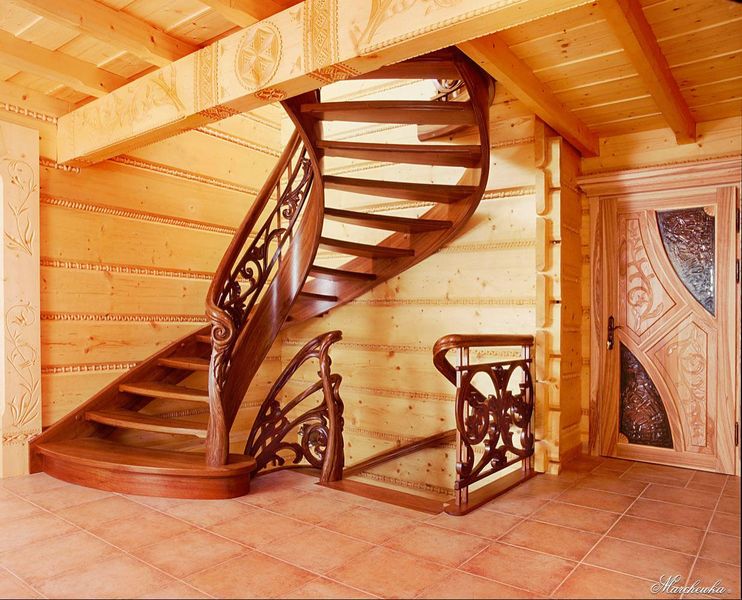 Винтовая. Данное решение позволит сэкономить немало места. Стоит отметить, что винтовая лестница станет изюминкой любого интерьера. Однако спуск или подъем по ней может вызвать трудности у детей или пожилых людей. Это обусловлено ее сложной поворотной геометрией.